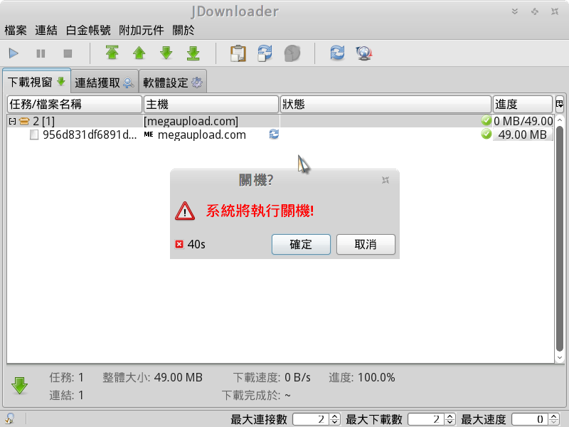 ▼下載檔案完成有六十秒的關機猶豫時間,時間一過程式就會自動關機了▼
